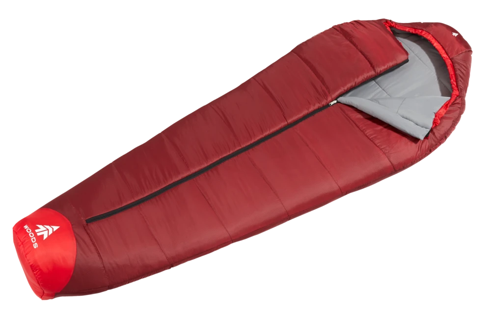 - Woods™ Adventurer Sleeping Bag features a unique centre zipper making it easier to get in and out of the bag