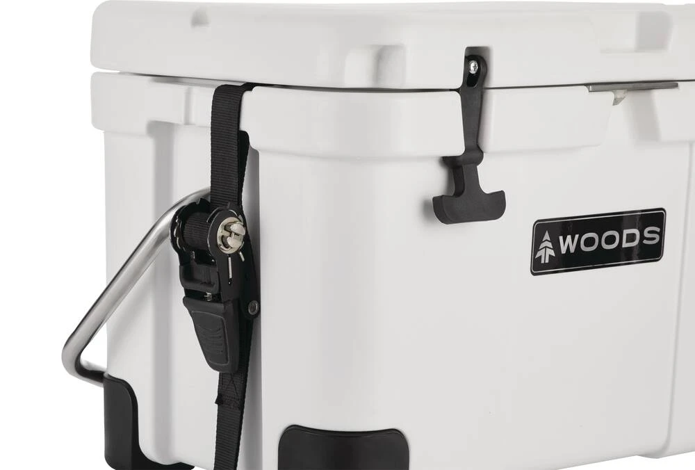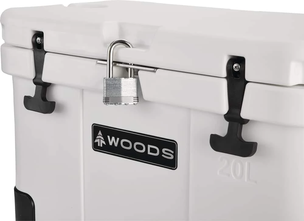 - Woods™ ARCTIC Roto-Moulded Cooler features a lockable lid with padlock ports (padlock not included)