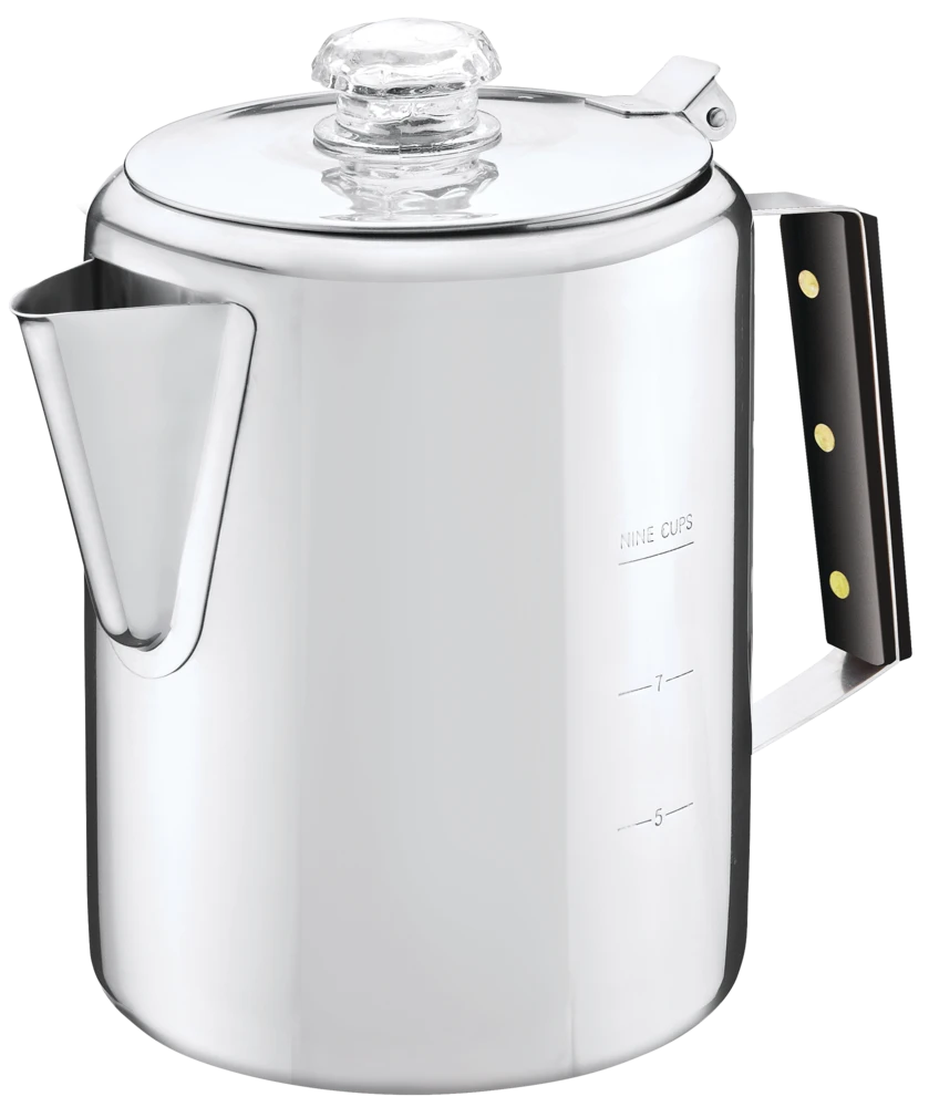 - Woods™ Daybreak Stainless Steel Coffee Percolator is made from heavy-gauge stainless steel