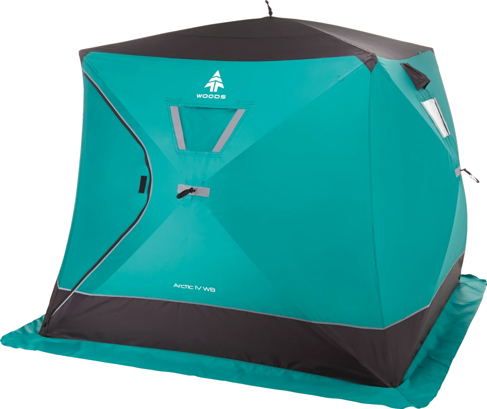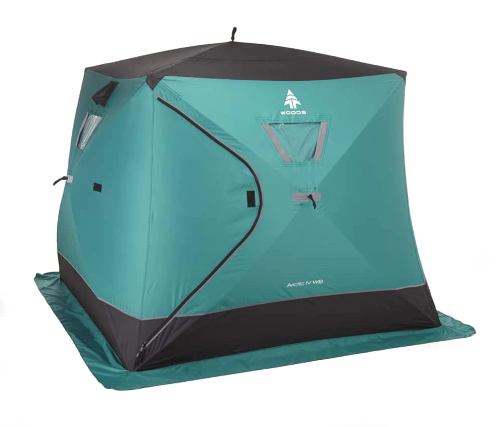 - Woods Arctic Ice Shelter covers extended ground with the extra long skirt to keep the elements outside