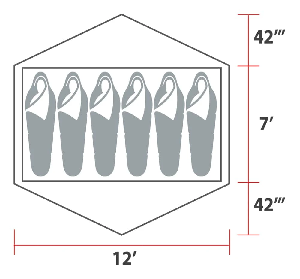 - Tent Dimensions: 12′ x 7′ x 6’2″ (3.7 x 2.1 x 1.8 m)