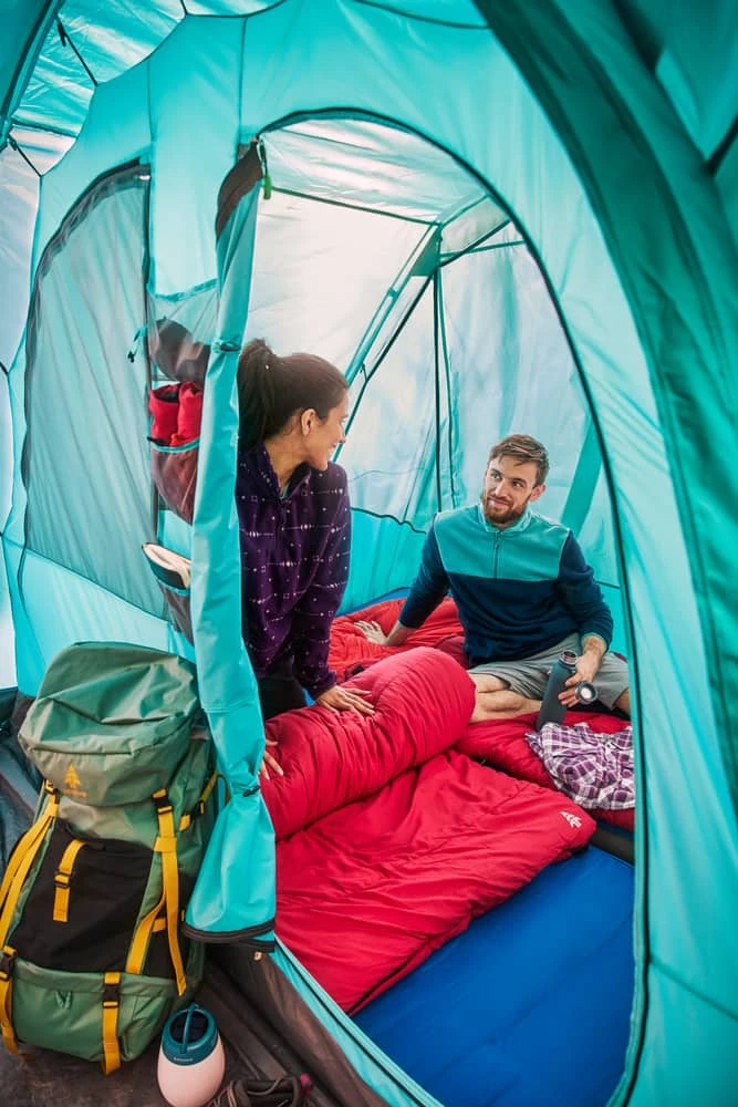 - Woodsâ„¢ Refuge Tent provides enough room to fit 6 people in sleeping bags