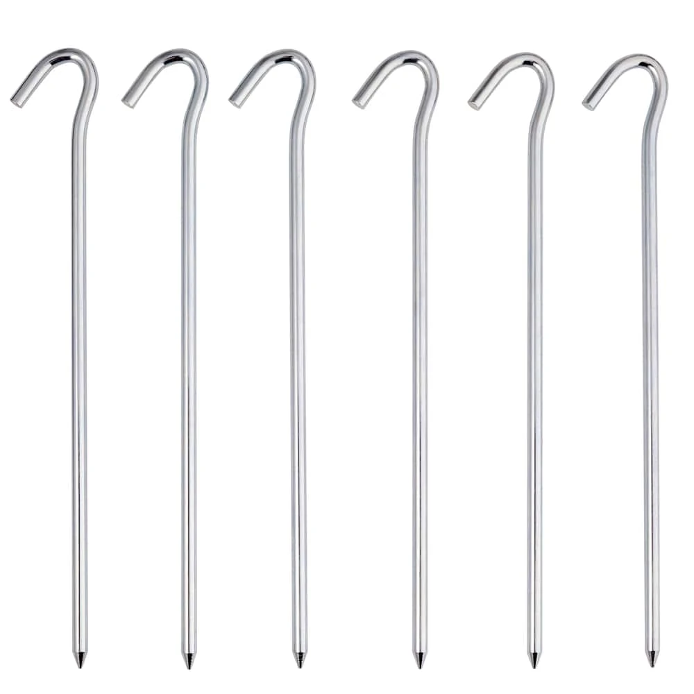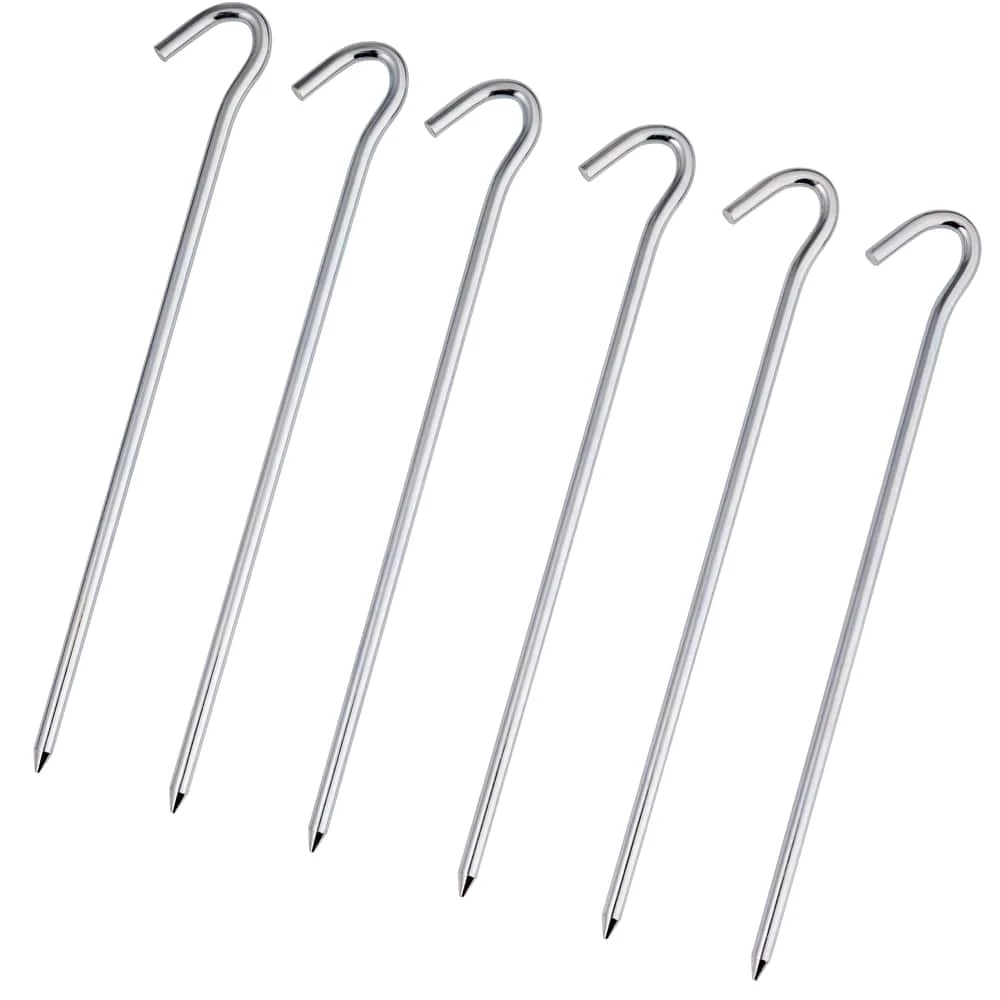 - Strong and durable steel tent pegs with hook