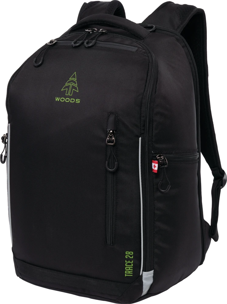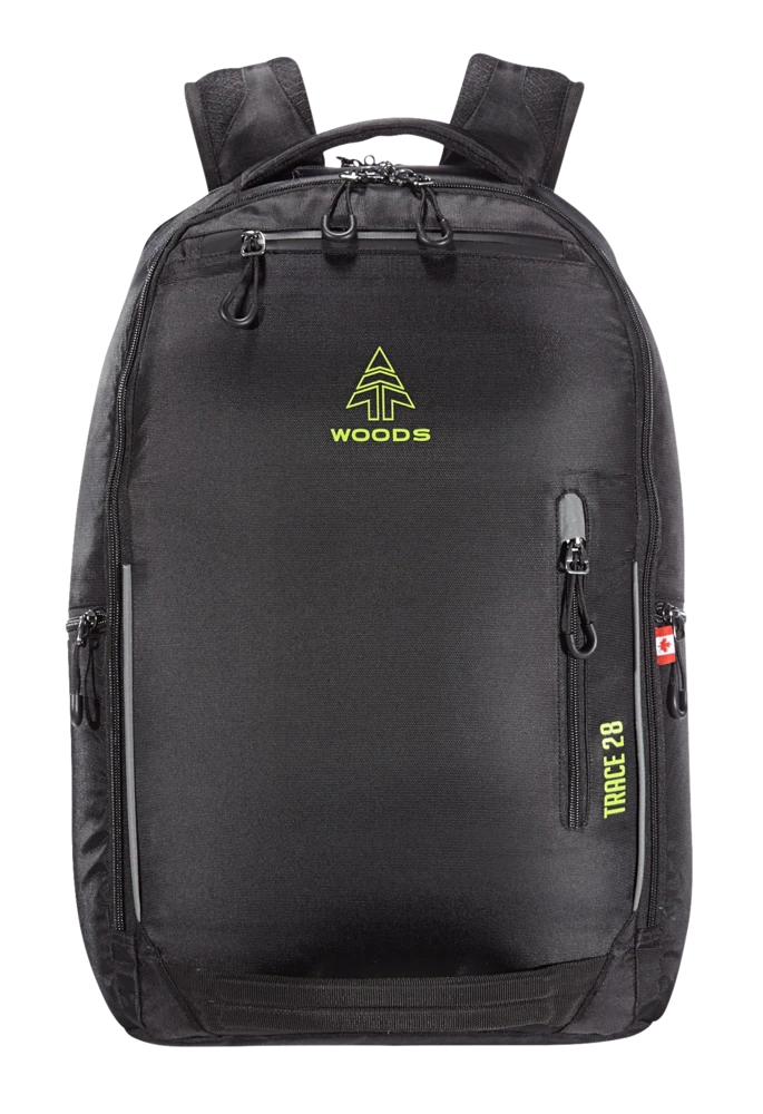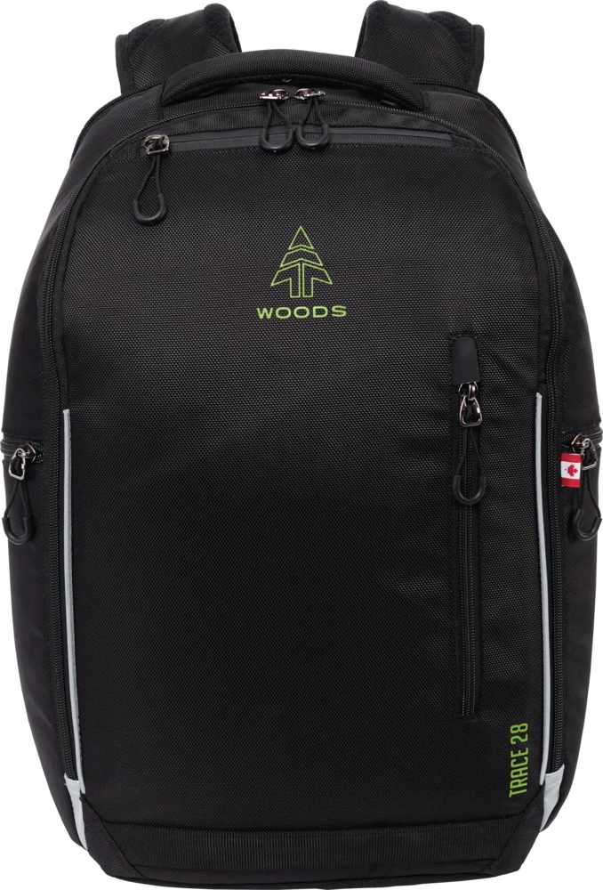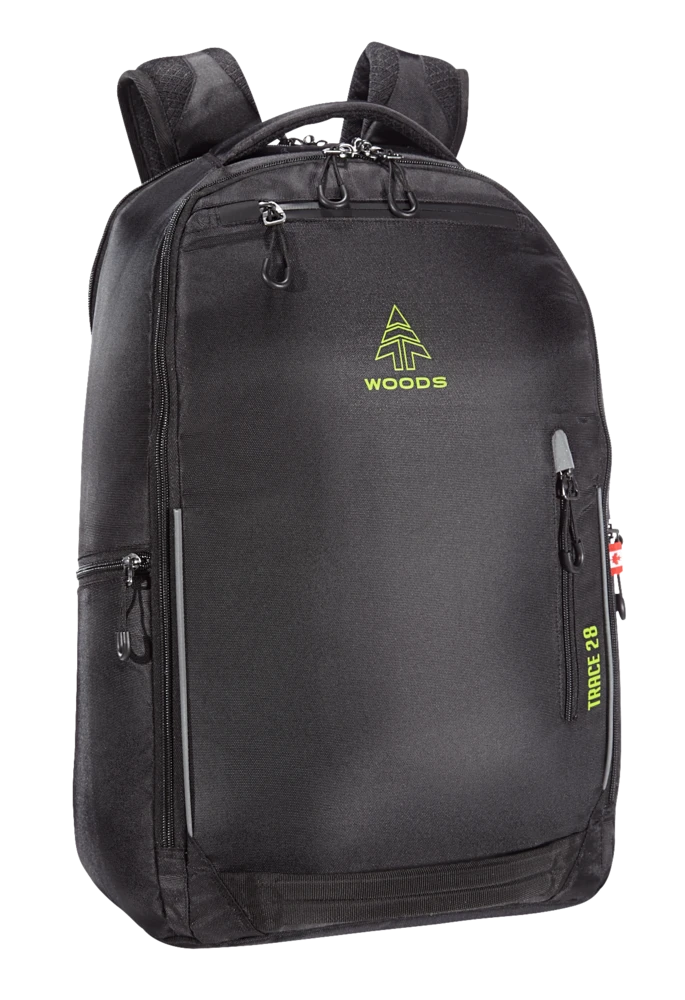 A go-to travel companion for far off destinations or commutes closer to home, the Woodsâ„¢ Trace Daypack is everything and more. Three large main storage compartments open wide for easy access to essentials and a padded laptop pocket fits a 17.5″ laptop. Multiple secure stash pockets and air-flow back panels make it a great pack for on the move situations in the city or the airport.
