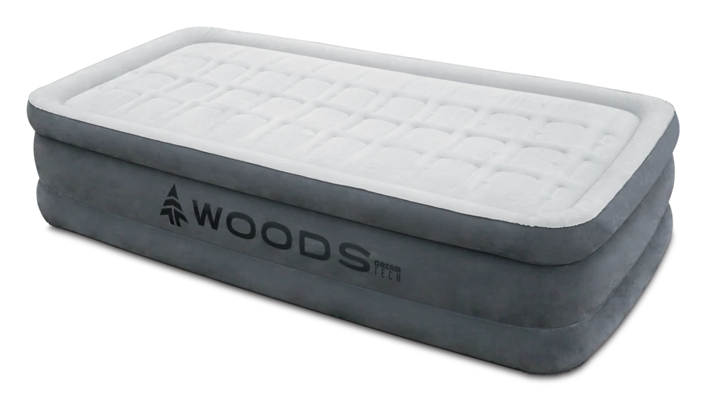 - Woodsâ„¢ Double-High Dream Tech Air Mattress with Pump uses polyester mesh materials to create its advanced Ibeam construction